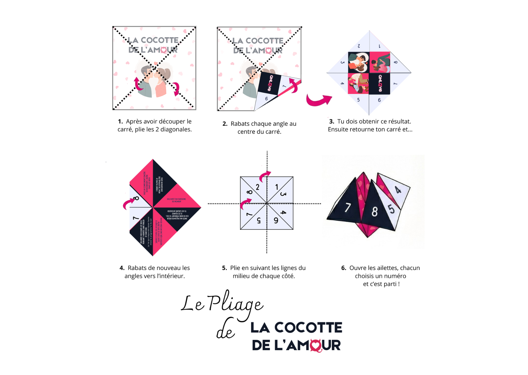 Celles qu'on pliait soigneusement à la récré pour prédire l'avenir ou donner des gages absurdes aux copains. On passait des heures à choisir une couleur, un chiffre, pour finir par découvrir qu'on allait habiter dans un château ou épouser le voisin de table. J'ai décidé de remettre ce classique au goût du jour pour QnLOVE, mais en version couple.